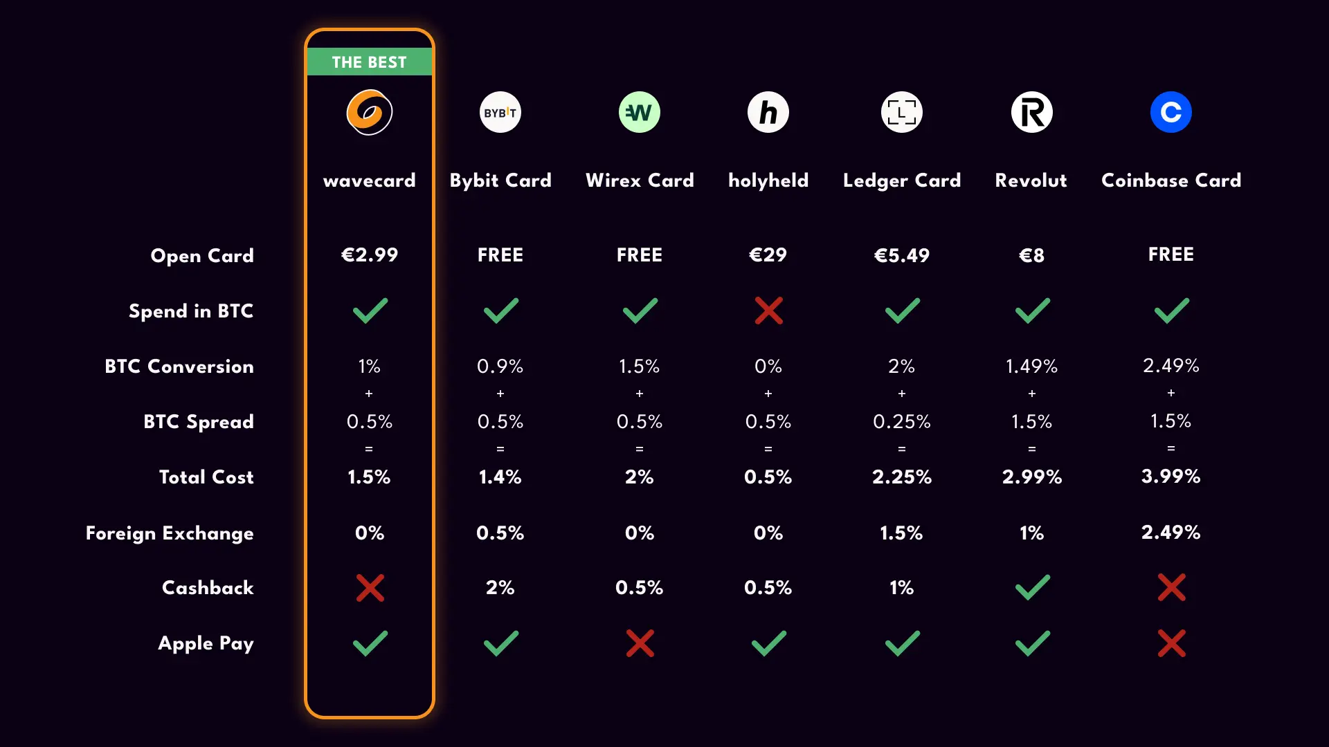 1. wavecard® - overall the best & cheapest Bitcoin debit card in Europe!