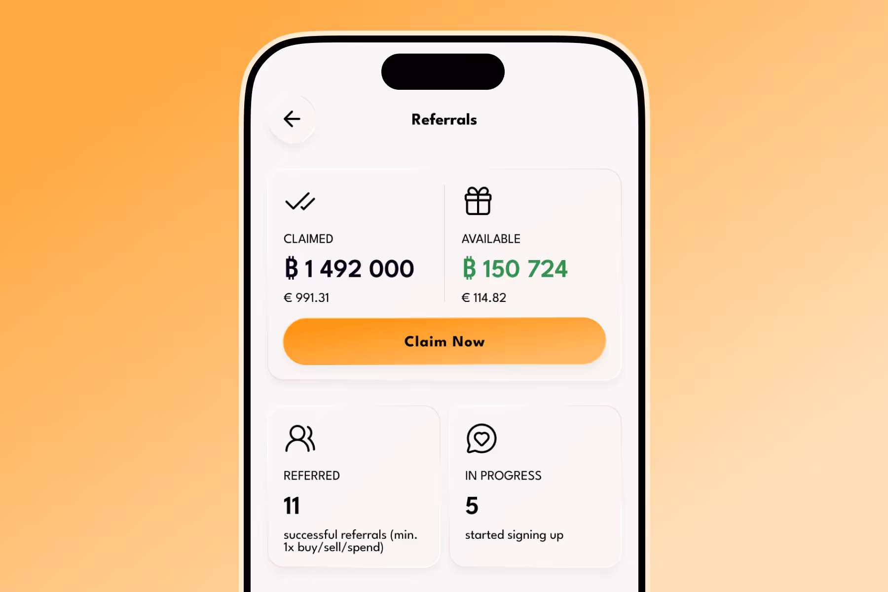 Reach milestones of 1, 3, 5, 10 and more referrals to unlock additional status perks, from extra BTC bonuses to permanently free BTC/EUR conversions!